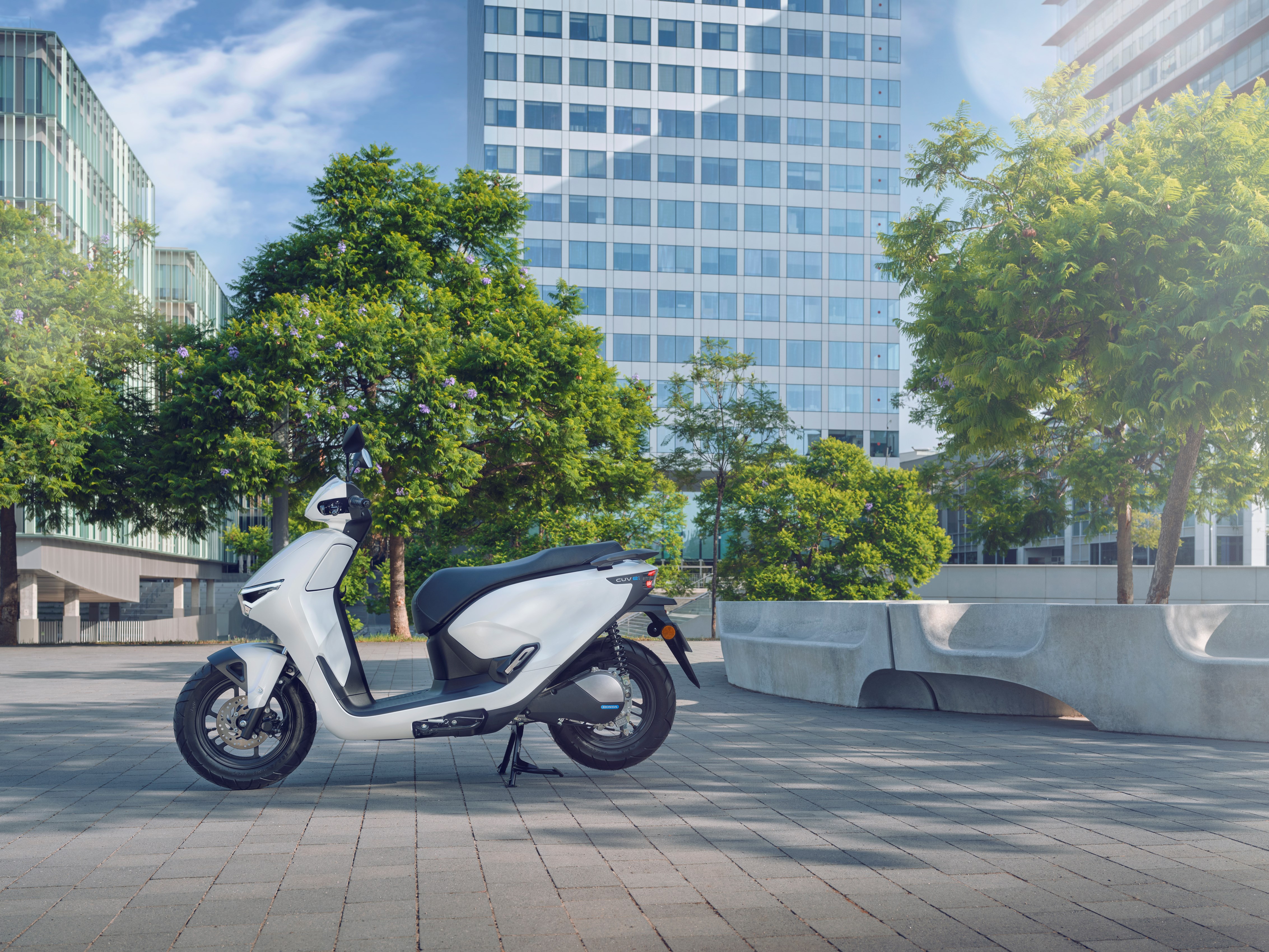 Skuter Hondy w każdym calu – a jednocześnie pojazd elektryczny CUV e: otrzymał elegancki, prosty i „czysty” design, który podkreśla jego nowoczesność i indywidualizm dzięki klasycznej sylwetce z charakterystycznymi bardzo współczesnymi detalami. Pełne oświetlenie LED jest akcentem charakterystycznym dla klasy premium, ale nie zapomniano o praktyczności skutera: płaska przestrzeń podłogi oferuje łatwy dostęp przy wsiadaniu i wysiadaniu i dodatkową przestrzeń do przewozu bagaży.